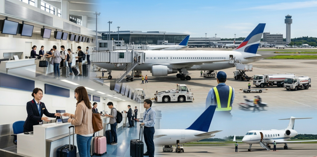 - 旅客対応(チェックイン・搭乗・特別旅客対応)およびクレーム対応